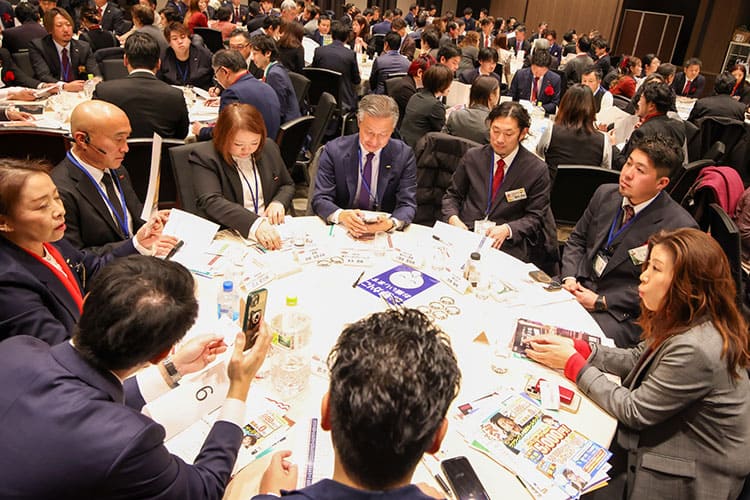 参加者が座るそれぞれのテーブルで、自社の宣伝や業務内容の説明をし商談します。